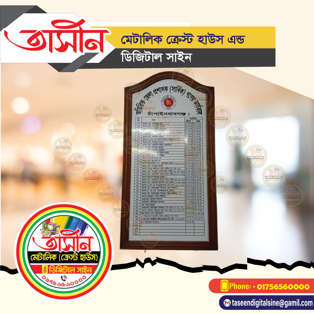 এই অর্নার বোর্ডটির সাইজ ৩০×৬০ ইঞ্চি, তবে আপনি চাইলে যেকোনো সাইজে বানাতে পারবেন। এটি ডিজিটাল অ্যালুমিনিয়াম (গোল্ডেন শিট) দিয়ে তৈরি। শিট দুটি রঙে পাওয়া যায়—গোল্ডেন ও সিলভার। সাধারণত গোল্ডেন রঙেই বেশি কাজ করা হয়, তবে চাইলে সিলভার রঙেও তৈরি করা যাবে।